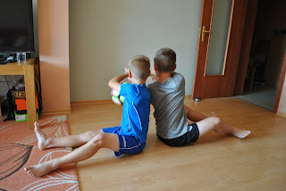 Можно посадить сына на шею и делать приседания. С мячом уже тяжелее: дома с сыном так же повозиться, не более. Упражнения любые, на что хватит фантазии. Использовать можно любые подручные и подножные средства: повесить утяжелители на ноги, использовать резинки для фитнеса. Я бегаю там, где есть рядом турники. Ничего необычного из подручных средств не использую.