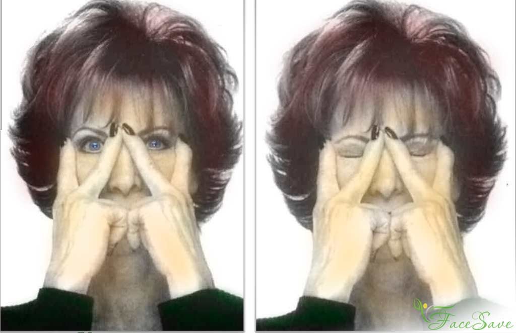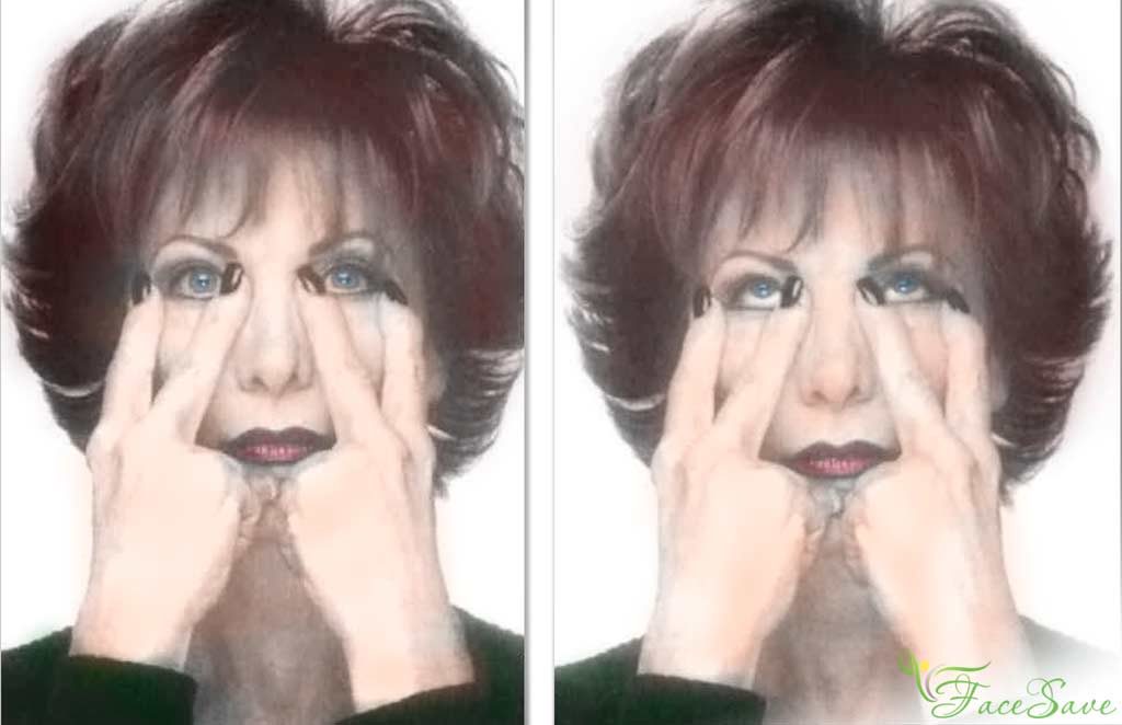 - Средние пальцы зафиксируйте на внутренние уголки глаз, указательные — на внешние.