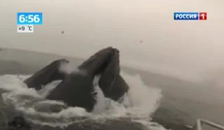 Пугающие кадры удалось снять исследователям из Калифорнии. Пока два дайвера плавали на поверхности залива, снимая стаю рыб, к ним незаметно приблизились горбатые киты. Два сорокатонных хищника начали охоту и чуть не проглотили ныряльщиков.