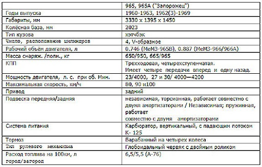 Тогда и было принято решение о производстве нового автомобиля в Запорожье, а двигателей для него — в Мелитополе. Первые ЗАЗ-965 (такой индекс получил новый автомобиль) сошли с конвейера в 1960 году. Машина имела расположенный сзади двигатель воздушного охлаждения мощностью 23 л.с., скомпонованный в один узел с коробкой передач и приводом ведущих задних колёс. За счёт отсутствия карданного вала, салон автомобиля получился относительно просторным. При этом габаритная высота была небольшой, а центр тяжести располагался низко, что положительно сказалось на устойчивости и проходимости.