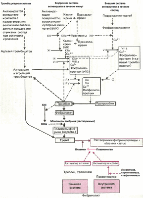 Рис. 21. Схема свёртывания крови и фибринолиза.