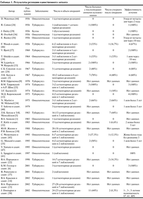 В последнее время статьи о резекции единственного легкого публиковались крайне редко и в основном представляли собой описание отдельных клинических случаев [1, 21, 31, 41—43, 45, 47].
