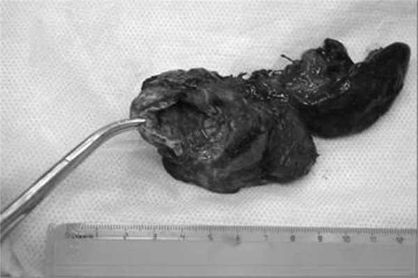 Рис. 2. Удаленная у больного Ш. верхняя доля правого легкого.