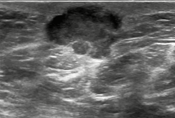 Злокачественное новообразование (рак) молочной железы на УЗИ проявляется в виде уплотнения, которое не имеет четких границ и прорастает в соседние области (инфильтративный рост). Размеры злокачественного новообразования, его расположение, наличие изменений в регионарных (местных) лимфатических узлах имеют большое значение в определении стадии заболевания. Как правило, при обнаружении на УЗИ молочных желез признаков, характерных для опухоли, требуется подтверждение диагноза с помощью дополнительных методов исследования (пункция, или биопсия молочной железы).