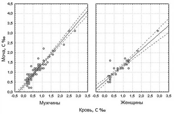 Концентрации этанола в крови и моче на момент смерти у лиц, умерших от алкогольного поражения сердца, не находятся в зависимости от возраста и половой принадлежности.