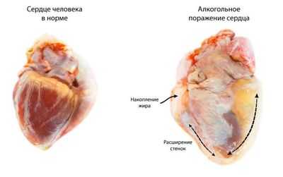 Токсичное влияние алкоголя на сердце обусловлено разрушением клеточных мембран этиловым спиртом и ацеальдегидом. В результате нарушается функционирование клеток сердечной мышцы (миокарда) и внутренней оболочки сердца (эндокарда). Вследствие того, что часть кардиомиоцитов разрушается, в сердце разрастается соединительная ткань, приводящая к тому, что стенка сердца под воздействием кровяного давления растягивается (дилатация), а оставшаяся часть нормальных мышечных волокон гипертрофируется, или увеличивается в размерах с заместительной целью. Такие процессы называются кардиомиопатией, и рано или поздно приводят к развитию хронической сердечной недостаточности, а также к нарушениям сердечного ритма. У некоторых людей систематическое употребление алкоголя в течение десятилетий приводит к “изнашиванию” сердца, а у некоторых уже через пять-шесть лет алкоголизма возникают заметные симптомы кардиомиопатии.