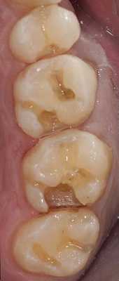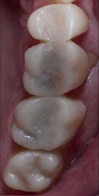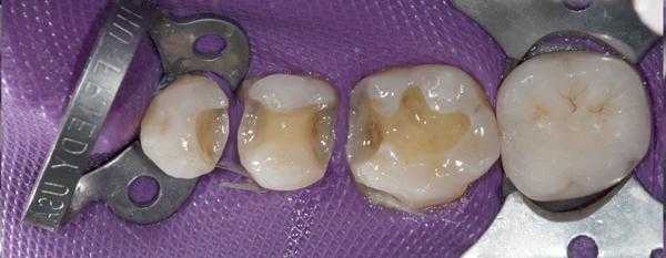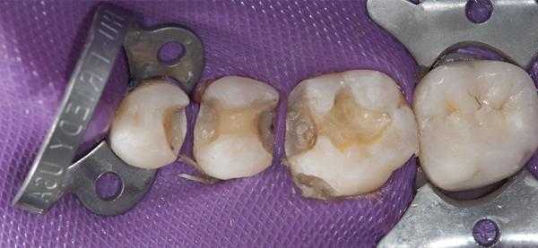 Если восстанавливают жевательный зуб, то весь композит могут нанести за один раз — беспокоиться об эстетике вне зоны улыбки не нужно.