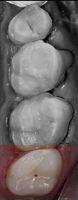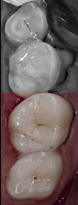 Бруксизм. При бруксизме, или непроизвольном скрипе зубами, следует отдать предпочтение более надежным ортопедическим конструкциям, например, коронкам. Сильное сжатие челюстей, особенно у мужчин, может вызвать преждевременное разрушение композитных реставраций, даже если используется непрямая реставрация зубов.