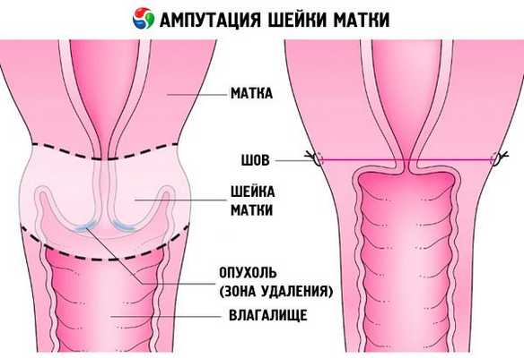 - высокая ампутация - полное удаление шейки, при этом на слизистой оболочке влагалища хирург делает надрезы.