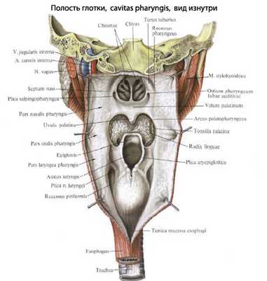 - Верхняя стенка глотки, прилежащая к основанию черепа, называется сводом, fornix pharyngis.