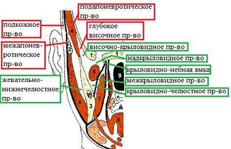Клетчаточные пространства височной области: