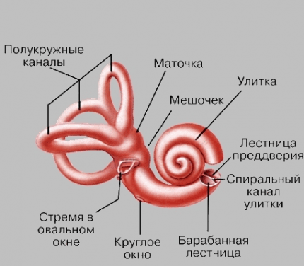 - Преддверия и полукружных каналов, которые отвечают за чувство равновесия и положения тела в пространстве.