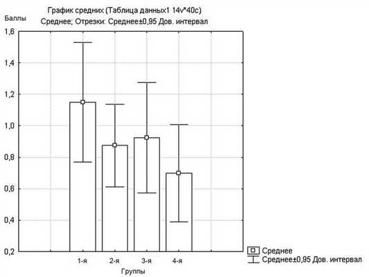Сходные данные были получены при оценке переносимости манипуляции врачом: средняя оценка переносимости фиброэндоскопии по шкале ВАШ в группах детей составила 1,1±1,19; 0,9±0,82; 0,9±1,09 и 0,7±0,97 соответственно (рис. 3), т. е. средняя оценка врача оказалась наихудшей в 1-й группе детей, в которой использовали физиологический раствор, и наилучшей — в 4-й группе, т. е. при использовании смеси растворов деконгестанта и анестетика (разница между группами статистически достоверна, р=0,03). Достоверной разницы по этому показателю между пациентами других групп не получено (p>0,05).