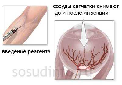 Флуоресцентная ангиография применяется для офтальмологической диагностики и основана на введении в вену пациента особого вещества (флуоресцин) с последующей съемкой сосудов глазного дна. Флуоресцин вводят в локтевую вену человека, и по кровотоку он поступает в сосуды глаза. После этого в обследуемый глаз направляют пучок света указанной длины волны, и тогда это вещество начинает светиться.