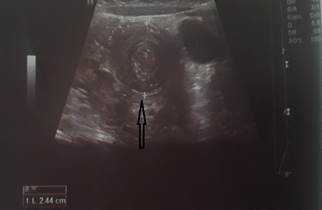На рисунках 2 и 3 отображена ультразвуковая картина кишечной инвагинации.