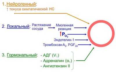 Рисунок - механизмы вазоконстрикции (сужения сосудов):