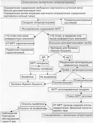 После подтверждённого гиперкортицизма необходимо проведение инструментальных методов исследования (МРТ гипофиза, КТ надпочечников).