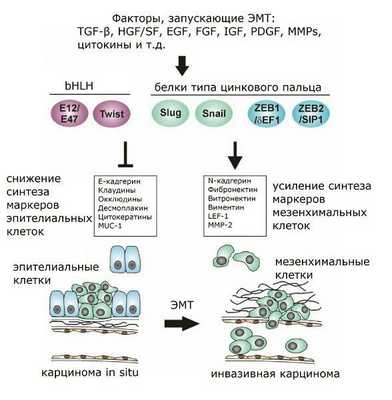 Молекулярные основы эпителиально-мезенхимального перехода и его роль в развитии и метастазировании опухоли.