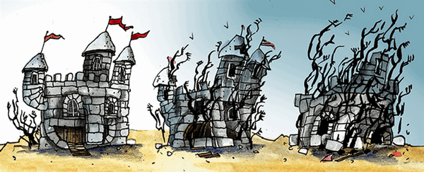 Рисунок 3. Иллюстрация художника Марка Симонетти (Marc Simonetti) к книге Т. Пратчетта «Мелкие боги». Люди начинают с веры в Бога и заканчивают верой в систему. И даже самые всемогущие существа, Великие Боги, могут исчезнуть и сгинуть в забытье, когда в них никто больше не верит. Как и гипотезы.