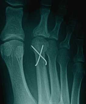 После выполнения оперативного вмешательства также рекомендуется ношение ортопедической обуви с жёсткой подошвой и подкладками в области головки второй плюсневой кости.