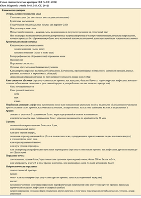 Схема. Диагностические критерии СКВ (SLICC, 2012)