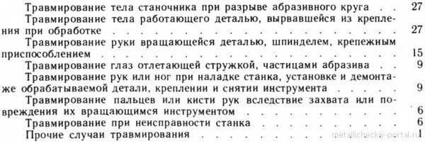Случаи механического травмирования при работе на шлифовальных станках распределяются в количественном отношении (%) примерно следующим образом:
