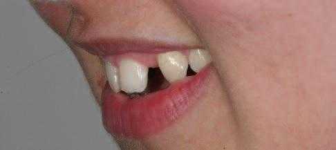Фото 6. Вид зубов пациентки слева, адентия 22 зуба.