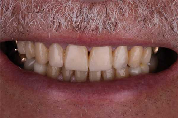 Со стоматологической точки зрения, первым этапом лечения должна быть визуализация вида окончательных реставраций. Временные коронки позволяют и врачу, и пациенту посмотреть, как будет выглядеть окончательный результат лечения. В данному случае промежуточный результат реабилитации полностью соответствовал ожиданиям пациента. Кроме того, позитивный эффект от временных коронок только способствует дальнейшему лечению в будущем. Для достижения подобных результатов нужно учитывать все аспекты планирования, мануальные навыки врача и характеристики используемого материала.