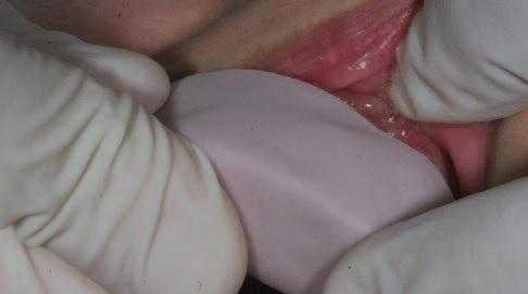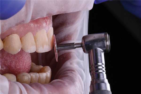 Затем требуется тщательно отшлифовать излишки и шероховатости того участка, который будет располагаться в области десны. При необходимости временную конструкцию можно обработать твердосплавной фрезой со скрещенными зубцами и отполировать ручным способом (например, резиновым полиром, шлифовальным диском с мелкой зернистостью или щеточкой).