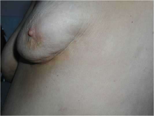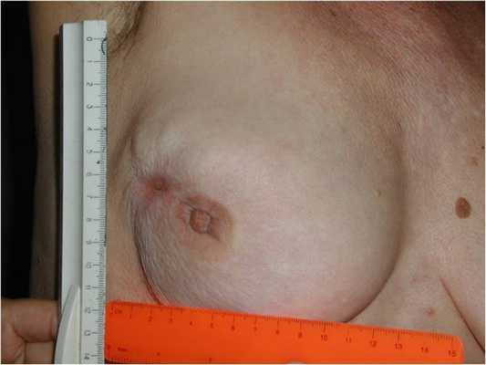 - Деформация контура молочной железы, ареолы или соска (втяжение кожи или наоборот выбухание)