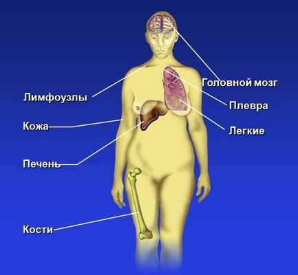 Также при 4 стадии опухоль может распространяться за пределы грудной клетки, в подмышечную область, внутренние грудные лимфатические узлы. Возможны метастазы в надключичные лимфатические узлы, а также в легкие, печень, кости или головной мозг.