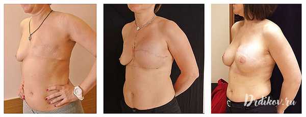 - Аутопластика. Извлеченная грудная паренхима замещается собственными тканями. Самый лучший вариант - лоскут широчайшей мышцы спины, но это сложный и травмоопасный путь. Чаще используется кожно-мышечный лоскут из нижней области живота. Операция по установке лоскутов длится 3-5 ч. Окончательный результат можно оценить через 3-4 месяца после операции.