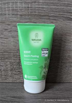 Пилинг для тела от Weleda Birke Dusch-Peeling. У меня осталось его немного, добью в отпуске. У скраба кремовая текстура с мелкими частичками. Мягко и нежно отшелушивает. Яркий, свежий и бодрящий аромат.