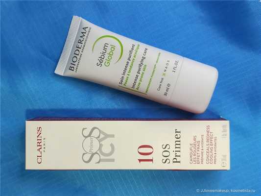 - Clarins SOS Primer ICY — база под макияж с охлаждающим эффектом. Взяла на случай красного пылающего лица, но до сих пор не открыла.