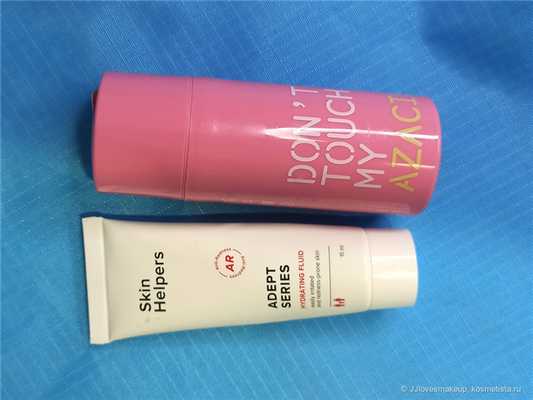 - Открытие сезона, Skin Helpers Adept Series Hydrating Fluid. Увлажняющий флюид для лица, успокаивающий кожу с покраснениями. Сыворотку от Don't touch my skin нельзя использовать со средствами, содержащими кислоты, поэтому я достала единственное средство для лица без них, и это оказалась миниатюра Skin Helpers из бьюти-бокса. Флюид замечательно работает в паре с сывороткой, действительно уменьшает покраснения (у меня в области носа и щёк) и успокаивает кожу.