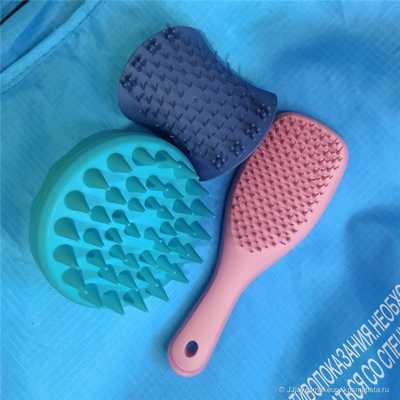 - Tangle Teezer The Scalp Exfoliator and Massager — классная щётка для массажа головы. Я использую её на влажных волосах с нанесенным на них шампунем, делаю небольшой массаж кожи головы и смываю шампунь. Также ей можно распределять бальзам и маску по влажным волосам.
