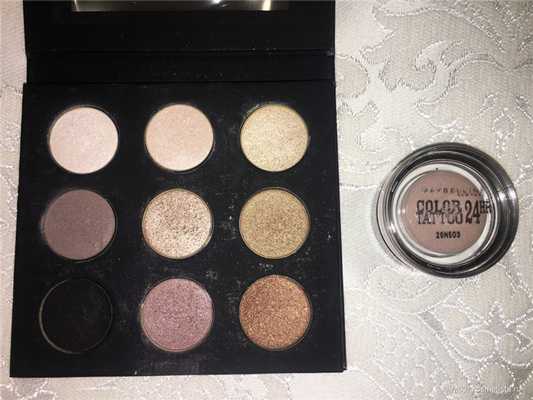 Например, можно не брать хайлайтер и скульптор если подходящие оттенки есть в палетке теней. К слову, я могу ограничиться одной палеткой теней, например, MUFE 9 artist shadow palette + кремовые тени, например, Maybelline Color Tattoo 91 Creme de Rose (которые можно использовать в качестве подложки).