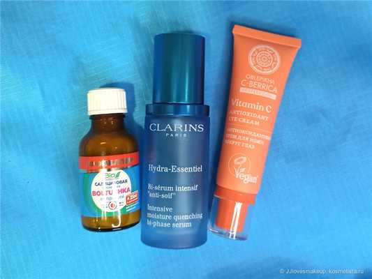 - Увлажняющая сыворотка Clarins Hydra-Essentiel Intensive Moisture Quenching Bi-Phase Serum, которую я наношу на ночь. Это единственное интенсивно увлажняющее средство для лица, которое я взяла с собой, и мне всё ещё очень нравится эффект от нее. Для моей комбинированной кожи её хватает на 125%.