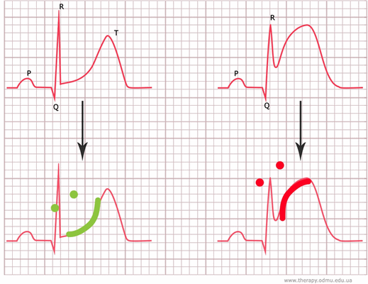 Депрессия сегмента ST сердца. Ишемический подъем ST на ЭКГ