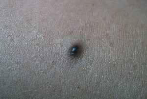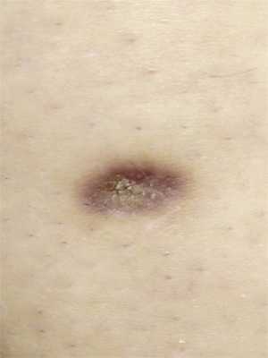 или несколько плотных узелков на коже. Имеет маленький размер - до 1 см. Цвет этого образования варьирует от красного до чёрного оттенка.