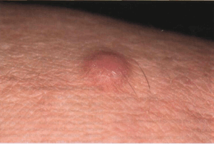 Характеризуется солитарными, редко — множественными узлами круглой формы, до 1-2 см в диаметре, залегающими глубоко в коже или подкожной клетчатке. Поэтому часто опухоль как бы втянута в кожу и ее верхний полюс находится на уровне окружающих тканей, в других случаях—возвышается куполообразно. Элементы плотные, с гладкой, иногда веррукозной поверхностью, от цвета нормальной кожи до красновато-коричневого, безболезненные, иногда могут сливаться в дольчатые конгломераты.