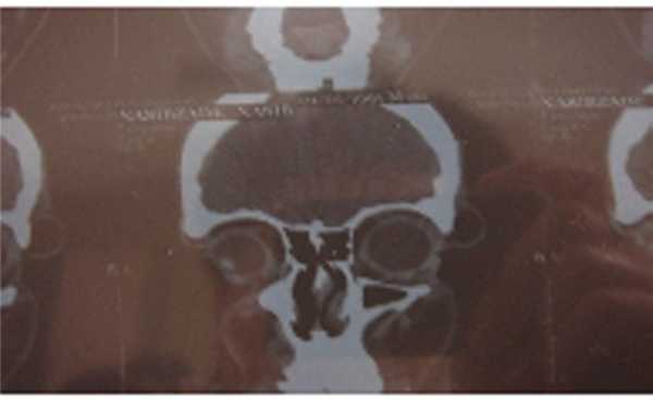 Все больные проходили КТ-исследование, благодаря которому можно изучить структуру самой опухоли, а также состояние подлежащих костей и степень распространения в орбиту. На К.Т. выявлялось образование округлой или овальной формы с четкими и ровными контурами. У всех кист отчетливо прослеживалась капсула, а также наличие серозного содержимого (рис. 5, 6). Узурацию костной стенки, описанную в литературе не встречали.