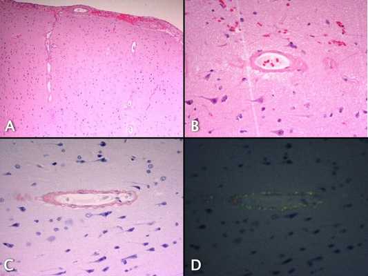 ЦАА обусловлена накоплением агрегированного р-амилоида в сосудах мелкого калибра
