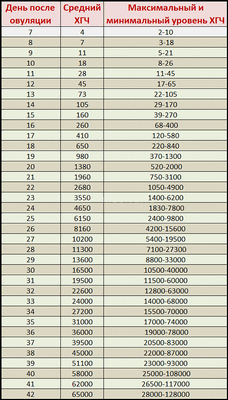В результатах анализа на ХГЧ это может выглядеть так. Например, ХГЧ в 1-2 недели составит от 25 до 156 мЕд/мл, а в 3-4 недели будет уже в пределах 1110-315000 мЕд/мл. Это позволяет гинекологу контролировать ход беременности и развитие плода, а также назначить дополнительное обследование, если полученные при анализе цифры будут значительно отклоняться от нормы.