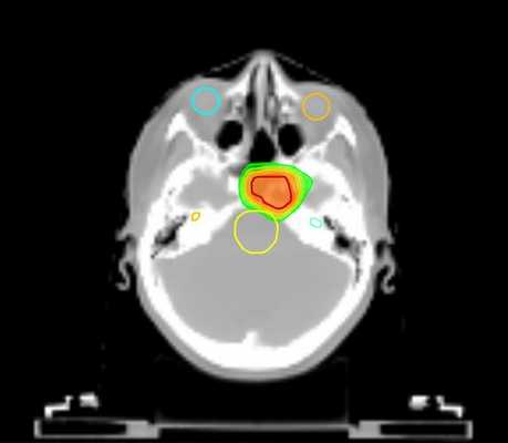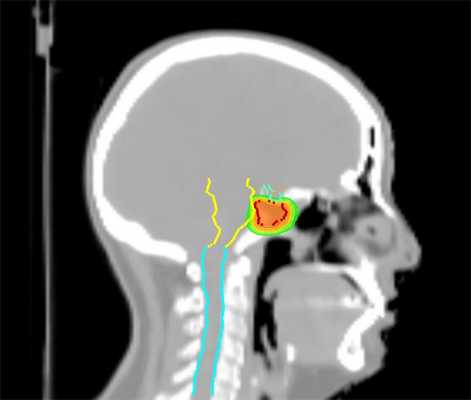 Tomotherapy — это принципиально новая концепция лучевой терапии, которая сочетает элементы КТ-сканера с линейным ускорителем, чтобы точно скорректировать положение мишени и органов, находящихся в зоне риска, непосредственно перед лечением. Это особенно важно в отношении опухолей основания черепа, где они располагаются вблизи жизненно важных структур ствола мозга.