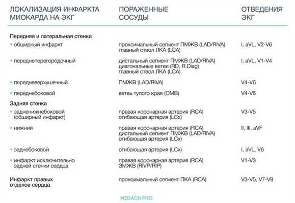 Специально для наших подписчиков мы сделали таблицу, в которой показаны изменения ЭКГ в зависимости от локализации возможного повреждения коронарных артерий.