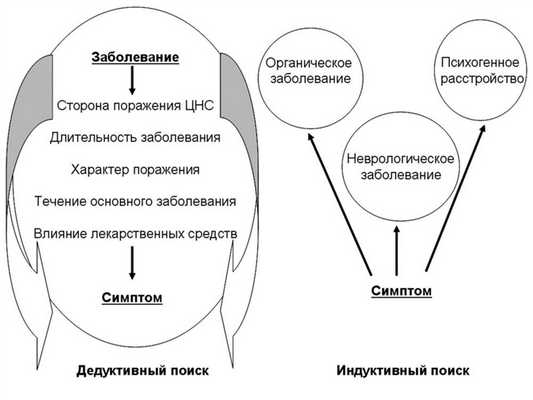 Дедуктивный метод диагностики ННМ и ПНМ основан на первичном утверждении, что больной страдает той или иной неврологической болезнью (инсульт, РС и т.д.) или у него имеется психопатологическое состояние (тревожное расстройство и др.).