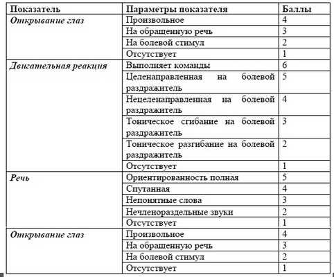 Таблица 1. Шкала ком Глазго