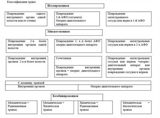 С учетом локализации выделяют политравму с поражением головы, шеи, груди, позвоночника, таза, живота, нижних и верхних конечностей.