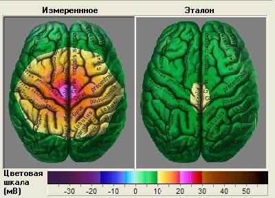 В случаях, когда имеются очаговые морфологические изменения мозга (как правило, в клинической группе последствий мозговых катастроф), карта измененного метаболизма мозга тесно коррелирует с очагами морфологических изменений [4,7,12].